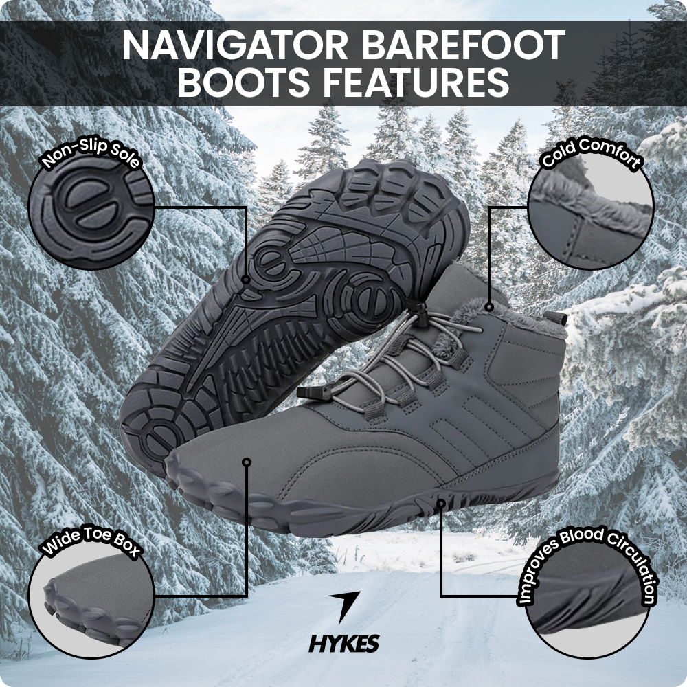 HYKES Navigator – Natural Movement Barefoot Shoes, Non-slip & Waterproof, Winter (Unisex)