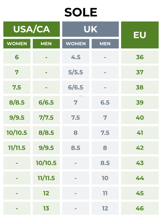 Sole Size Guide