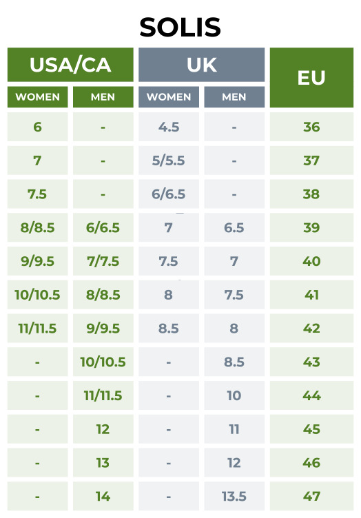 Solis Size Guide