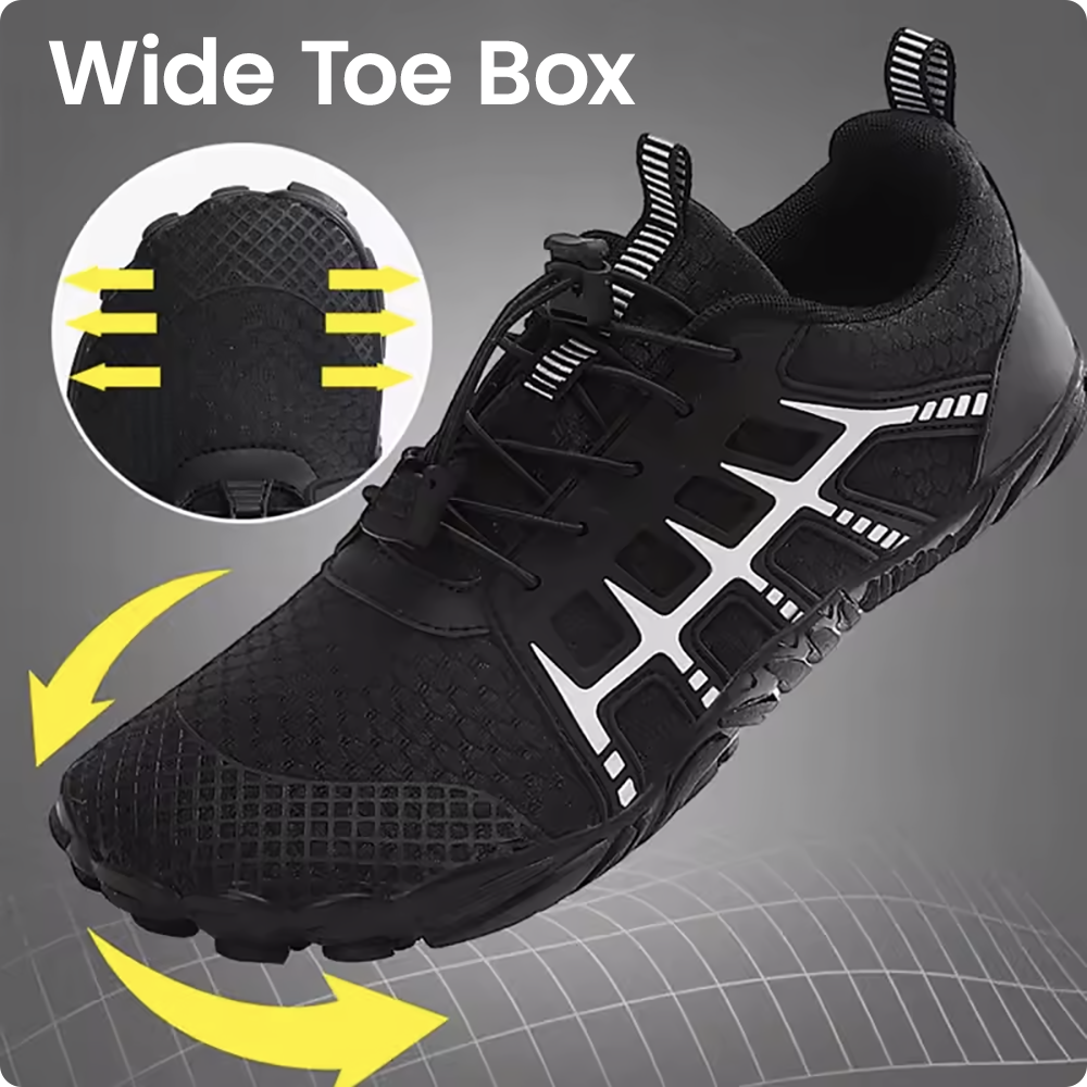 Spacious Toe Box - The generous toe box, combined with the flexibility of barefoot shoes, allows the toes to move and spread naturally, fostering foot strength and flexibility.